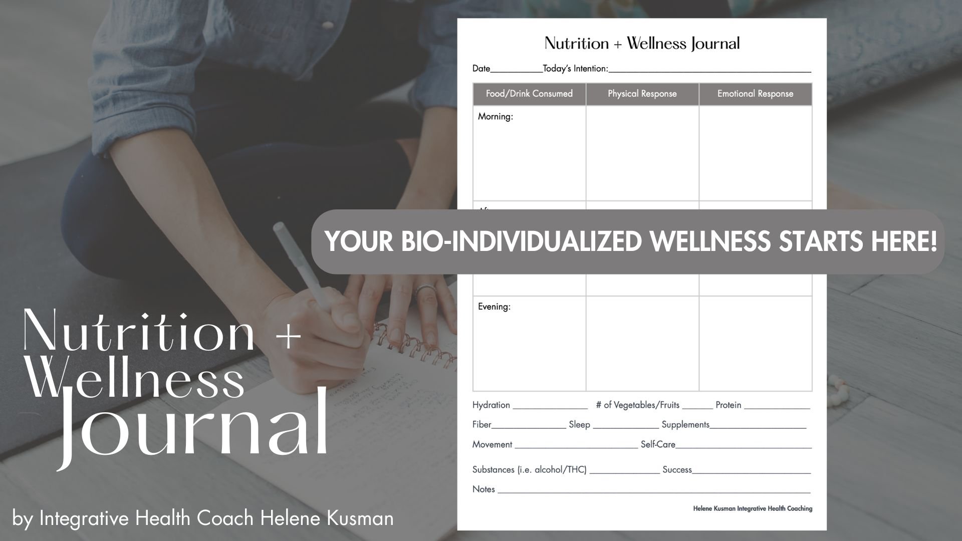 Track your food and drink, protein, fiber, exercise, hydration, supplements, self-care and more each day to look for patterns in how you feel physically,mentally and emotionally.